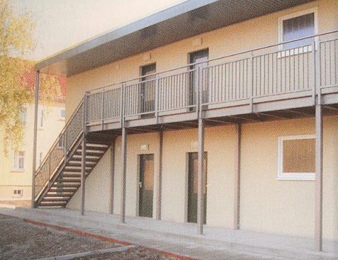 Innerhalb der Geschosse können integrierte Flure gewählt werden. So sind alle Räume untereinander trockenen Fußes zu erreichen. Integrierte Treppenhäuser bei größeren Anlagen und Sonderausstattungen sowie Zubehör für besondere Einsatz-Bereiche liefern wir ebenso nach individuellen Wünschen.